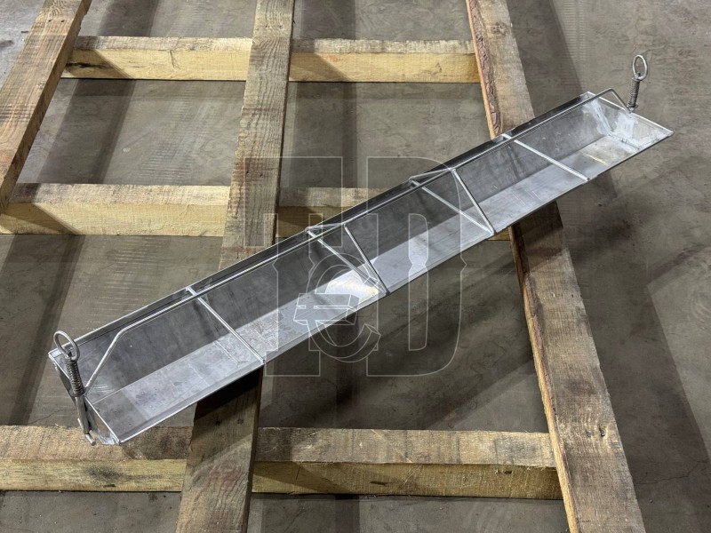 Переносне корито для поросят на дорощуванні з кріпленням до щільової підлоги. Ширина кормомісця 20см, кількість кормомісць в залежності від поголів'я. Зроблено з харчової нержавійки
